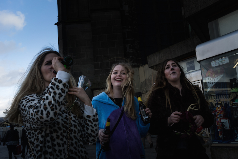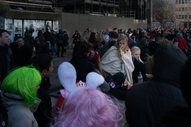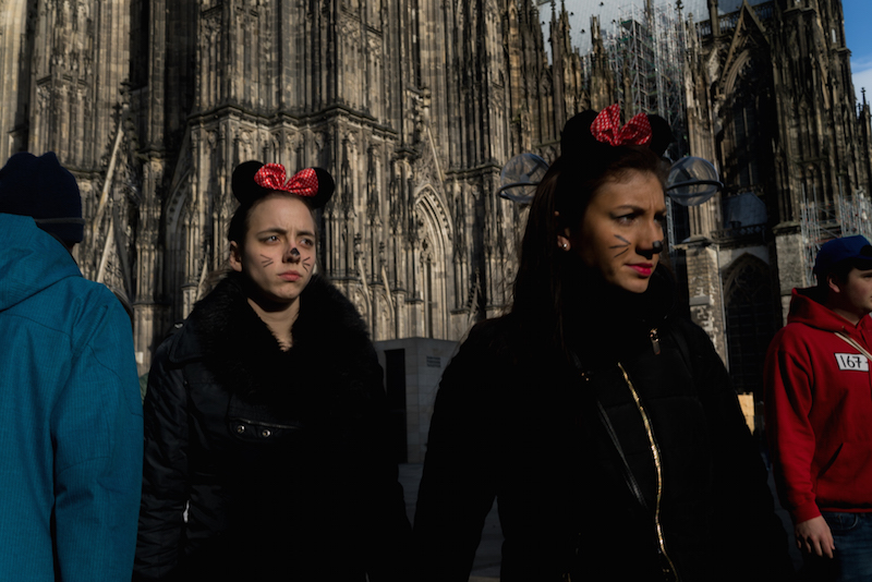 Der grosse griechische Lyriker Konstantin Kavafis schrieb einst ein Gedicht mit dem Titel „Warten auf die Barbaren“. Er beschreibt die Einwohner einer nicht benannten Stadt, in der das Leben zum Stillstand kommt, weil alle auf „die Barbaren“ warten, die wahrscheinlich die Stadt erobern werden, und die man willkommen heissen will. Im Vorfeld des Rosenmontagszugs ist viel spekuliert worden, man konnte eine Angstlust spüren vor der größten Party des Jahres, dem Rosenmontagszug. Die Bevölkerung und die Medien schienen nervös. Würde stürmisches Wetter all die Erwartungen und Vorbereitungen von Tausenden wegwehen? Aber nicht nur der prognostizierte Sturm beunruhigte die Menschen. Noch schlimmer schien die Aussicht darauf, dass sich die Ereignisse der Kölner Silvesternacht wiederholen könnten, in der Hunderte Frauen sexuell bedrängt und ausgeraubt wurden, meist von jungen Männern aus den Maghreb-Staaten. Als ich im Kölner Hauptbahnhof ankam und über den Domplatz ging, passierte nichts dergleichen. Auch der vorausgesagte Sturm war nicht mehr als ein starker Wind. Die Atmosphäre war gleichwohl gespannt, voll ausgelassener Freude oder unerfüllter Hoffnungen, beides angefeuert von großen Mengen Alkohol. Junge Männer versuchten sich im Flic Flac, und kontinuierlich war da der schwere und delirierende Sound einer Band von vielleicht zwanzig Trommlerinnen und Trommlern zu hören, zu spüren. Gruppen von jungen Männern querten den Raum, wachsam beobachtet von Polizisten, die Seite an Seite standen, und deren Ordnung die Form des Panzers einer Schildkröte hatte. Aber nichts passierte. Der Sound der Trommeln. Junge Frauen vor der Band, erschöpft und glücklich nach dem ausgelassenen Tanz. Und ganz anders als im Gedicht von Kavafis schienen die Einwohner der alten Stadt mit dem alten Namen ‚Köln‘ ziemlich erleichtert, dass die Barbaren nicht gekommen waren.