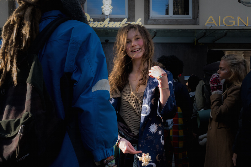 Cliques of male youngsters scoured the space, vigilantly observed by policemen who stood side by side in a strange combat order which mimicked the form of a turtle. Nothing happened. The drums. Young women in front of the band, exhausted and happy after their hilarious dance.