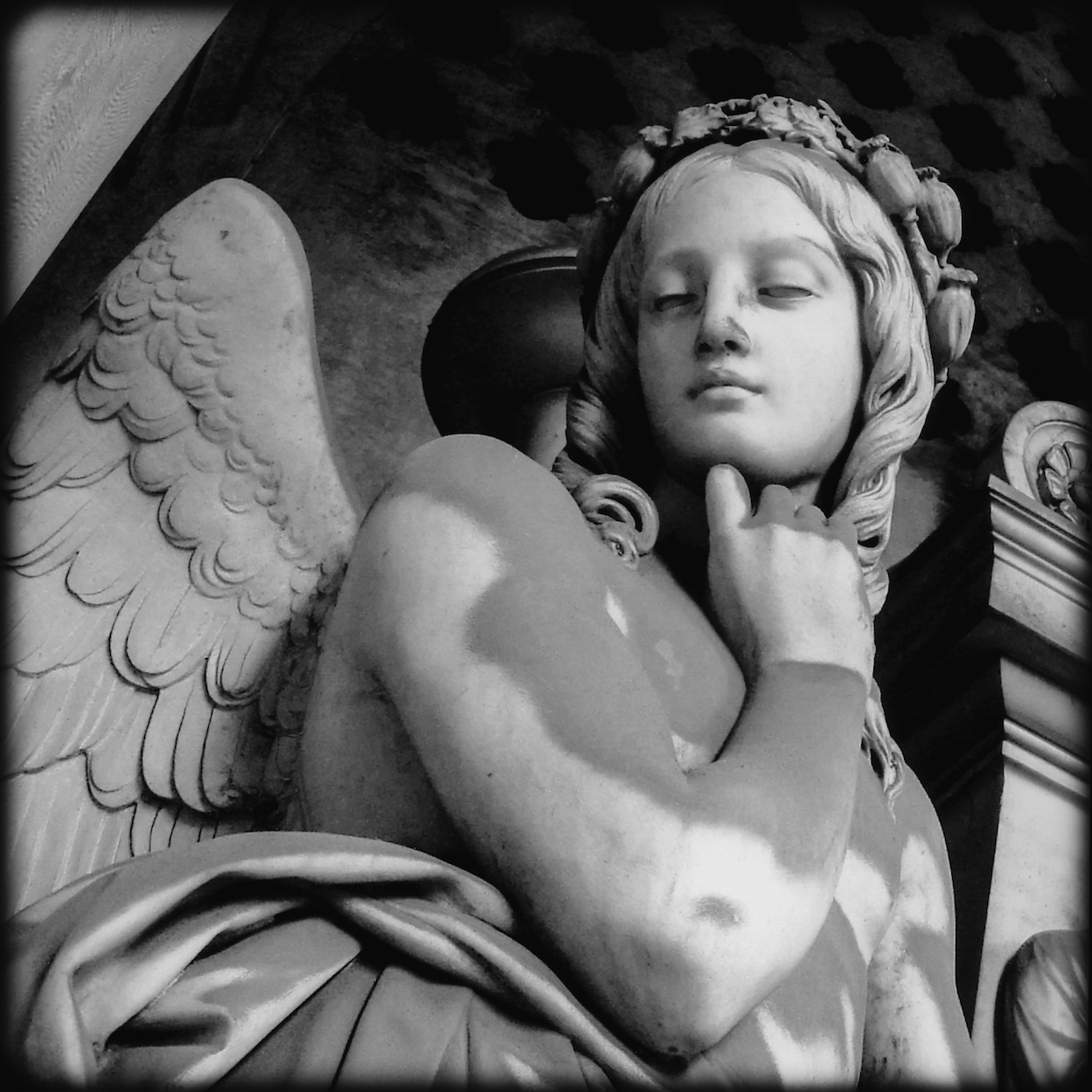 Stimmt schon, die technische Qualität der Fotos ist bescheiden. Ich habe sie damals mit einer kleinen Digitalkamera gemacht. Diese Bilder sind Scans kleiner Fotos, die ich in Lightroom mit einem tri-x preset bearbeitet habe. Dennoch: diese Bilder haben mir sofort wieder diesen unglaublichen Ort vor Augen geführt. Nie zuvor und danach habe ich einen Ort betreten, wo behauene Steine zu mir zu sprechen schienen. Flüsterten. Begehren und Leidenschaft verkörperten. Legitime Kinder von Pygmalion zu sein schienen. Wenn man die Erfahrung dekadenter Sinnlichkeit von Steinen machen will, sollte man den Friedhof von Genua besuchen.
