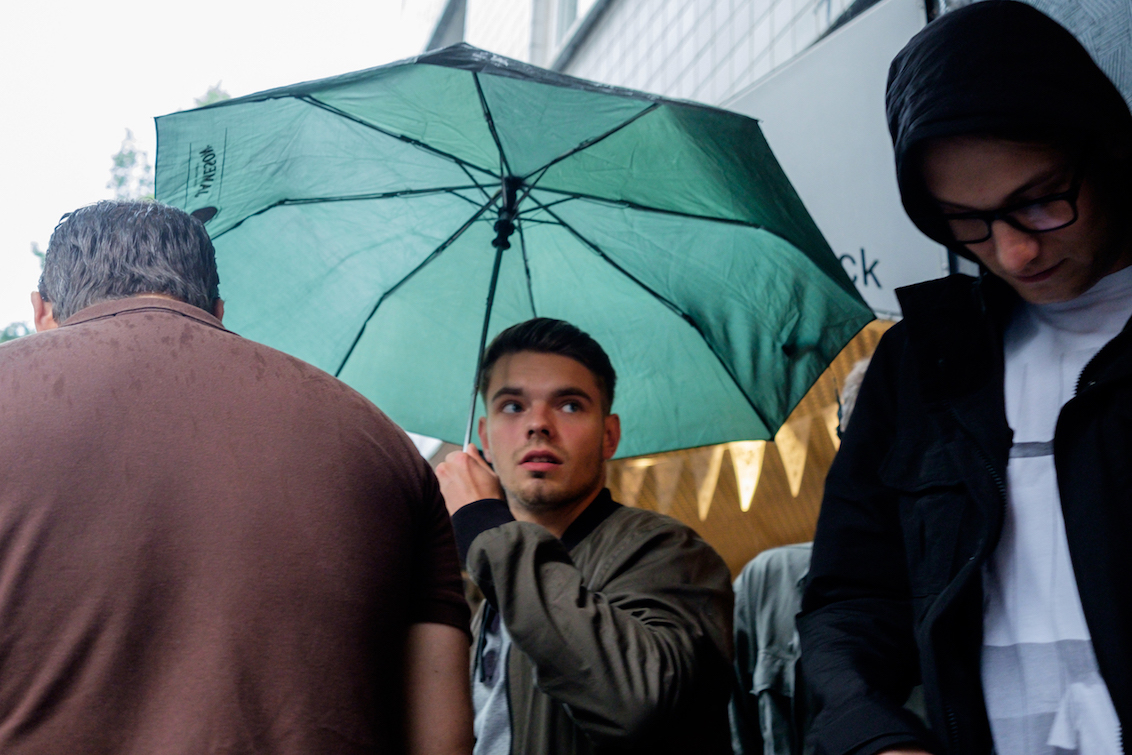 Once in a while you will see the dressed up youth of the Cologne hip-quarter „Belgisches Viertel‘ getting even more dressed up. Dj’s will line up in front of fashion stores, there even is a runaway for models in a car park, showing the stuff you can buy in the countless fashion shops of this quarter. The ‚hood‘ transforms itself into a party zone and calls itself ‚the bloc‘. This time, there was a humid and sticky atmosphere all over the place, and late in the afternoon a heavy rain nearly ruined the party. So young hipsters and the few remaining older people of this once not so chic quarter were forced to stand side by side unter awnings and in door entrances to be protected from the rain.