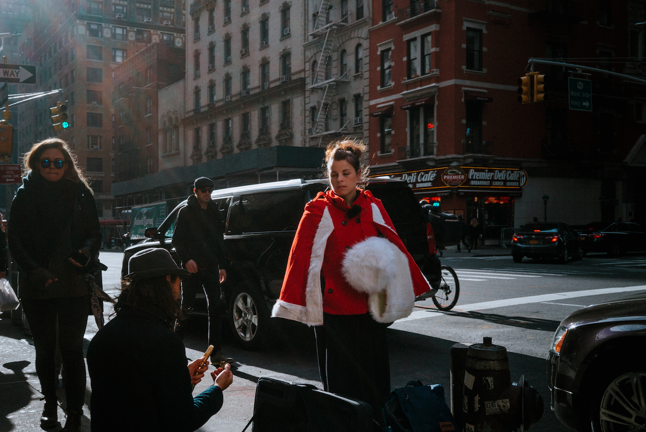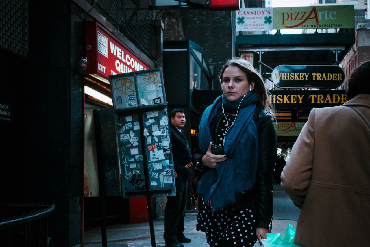Ich weiß nicht, warum ich New York nicht in ganz normalen Farben sehen kann. Technicolor scheint mir angemessener zu sein. Seherfahrungen, das kulturelle Erbe spielen eine wichtige Rolle, wie man Orte oder Gesichter wahrnimmt. Für mich ist New York Technicolor, wenn ich an die Stadt denke, sehe ich die Filme, die Musicals, die in den 50er und 60er Jahren gedreht wurden, und insbesondere die wunderbare Fotografie von Saul Leiter, dessen Bilder so schön sind, dass Worte sie nicht beschreiben können.