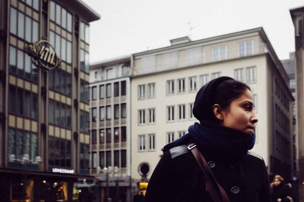 Of course Cologne isn’t depressive, Cologne is exactly what it’s vsitors might see in it. But in January there is no laughter, not even in Cologne. There are weather conditions. And after some light-tight days the city is blurry – or at least my mood is. There is a long tradition of Cologne-Bashing, especially from writers, especially during the period of enlightenment. That’s because of it’s then allmighty Catholic Church. There is no almightiness now in town, besides the indolence of it’s inhabitants, who can bear grievances, and yes, even can enjoy bearing. One of the better known Cologne-Bashers was the poet Rolf Dieter Brinkmann. Here’s one quote, which shows his level of enthusiasm for the city: A dirty yellow sky, a dirty yellow sky, a yellow dirty sky, a crappy yellow dirty filthy, Cologne sky, a crappy sky, a fucking bitch of a sky, a crappy yellow dirty Cologne fucking misery shit-sky, a sky, fucked up by shredded light. That quote nearly expresses my mood this morning. But Cologne is what it is, or so to say: winter depression, c’est moi. I had to leave the appartement. With a digital camera and an old Rolleiflex. Went to the Rheinauhafen. Walked and walked, passed the stylished buildings, which are rented by lawyers, senior consultants, mediators and business consultants, living like ticks from the blood of an decreasing industry. But as I walked long enough I was thinking: Well, the sky is dirty, even filthy, but it’s not yellow. And when you walk long enough, and if you really want, then the grey sky even can turn blue. Speaking with Brinkmann: Who told you, that this is life? Im going into a different blue.