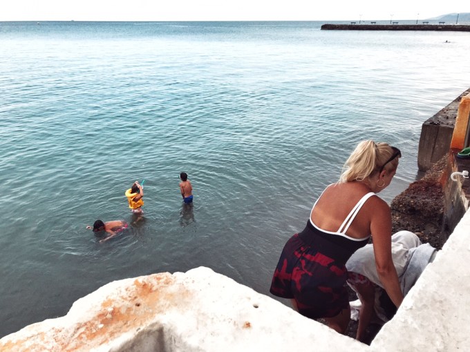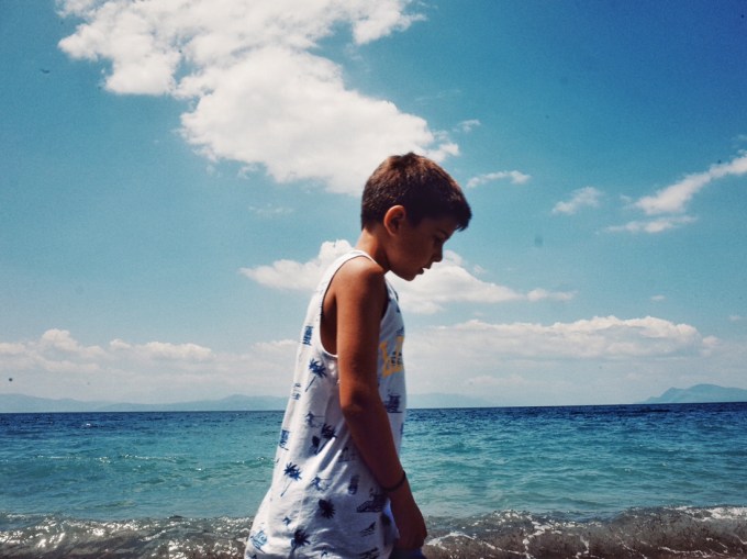 I remember well the booklets my father brought home from his office. On the front cover: nothing more than the sea. Sometimes with a stripe of beach, pebbles, rocks or sand. No humans. And in big Greek letters above all: ΕΛΛΑΣ. The sea always shined in a surreal blue, dazzled in bright greens. I didn‘t want anything more than plunging into this kind of sea. Maybe ten days ago I remembered these booklets, when we visited the beach of Korasidou (Evia). Those colors! The joy of escaping the unbearable heat, flying over hot pebbles and diving into the sea. So here‘s a tribute to the beach. Or: A tribute to our dreams of a beach. The nucleus of every Mediterranean holiday.