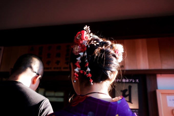Geishas, a lot of them. You can rent a kimono for 25 Euro. The more you approach the temples and shrines of Kyoto, the more colourful the streets will be. Japanese, Chinese and even American women seem to appreciate the lifestyle of a Geisha, at least for one day. Their partners will position them in front of beautiful backgrounds to take a picture, and if they don’t have a partner there’s always a mobile phone and a selfie-stick.