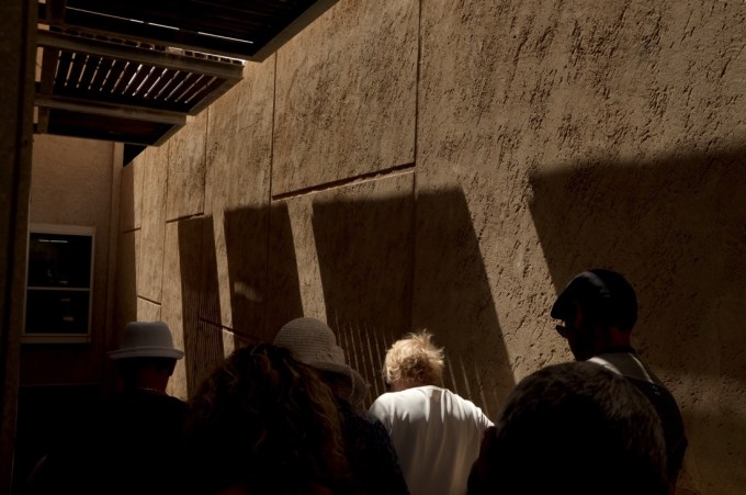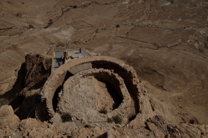 Aus Jerusalem raus und in die Judäische Wüste. Vorbei an modernen Siedlungen, die auch schon aussehen wie kleine Festungsanlagen. Im Eingangsbereich des Museums eine Filmvorführung. Sehr amerikanisch inszeniert mit Musik. Mit knackig martialischem Unterton führt der Erzähler durch die Geschichte. Als jüdische Aufständische nach Kaiser Herodes Tod lange den römischen Besatzern unter Flavius in der Festung die Stirn boten, so lange, bis die Situation aussichtslos war und sie sich vor der Erstürmung das Leben nahmen. 960 Männer und Frauen sollen sich samt ihrer Kinder selbst getötet haben. Irgendwann hüpft Peter O’Toole durch das Bild, er spielte in einem Hollywood-Film einst den römischen General Flavius. Als solcher wirkt er aber eher komisch als bedrohlich, schon weil Peter O’Toole ob als Lawrence von Arabien oder als römischer Feldherr immer wie ein schwuler Dandy der britischen Upper-Class der 20er Jahre wirkt. Für das Selbstverständnis der jungen israelischen Nation jedenfalls ist Masada bis heute eminent wichtig, Mitglieder der Streitkräfte pilgern regelmäßig hierhin, und sicher weniger, um die imposanten Baderäume von Kaiser Herodes zu bestaunen. Was trank er damals, nach einem Badegang, wenn er nachmittags auf seiner Terrasse saß und wie ein Adler von oben die Landschaft betrachtete?