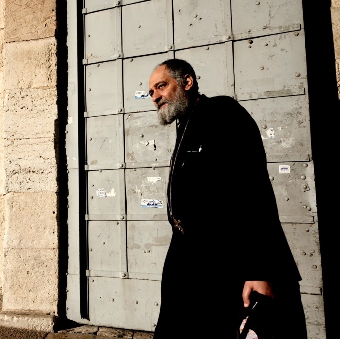 Jaffa Gate. One of the main entrances to the Old Town of Jerusalem. Slowly the shadows grow longer. I place myself maybe 15 minutes at the side of the gate, camera in hands. Many tourists with backpacks in my viewfinder. Sometimes men in black clothes, who seem to be out of time. Then I see them I take pictures. In order to create some kind of conceptual art I should stay much longer at this place. In order to create some kind of conceptual art, I should probably giving up looking who passes the door, should introduce coincidence as a principle or strict time frames. But then I would die of boredom.