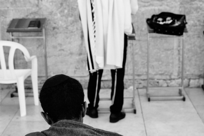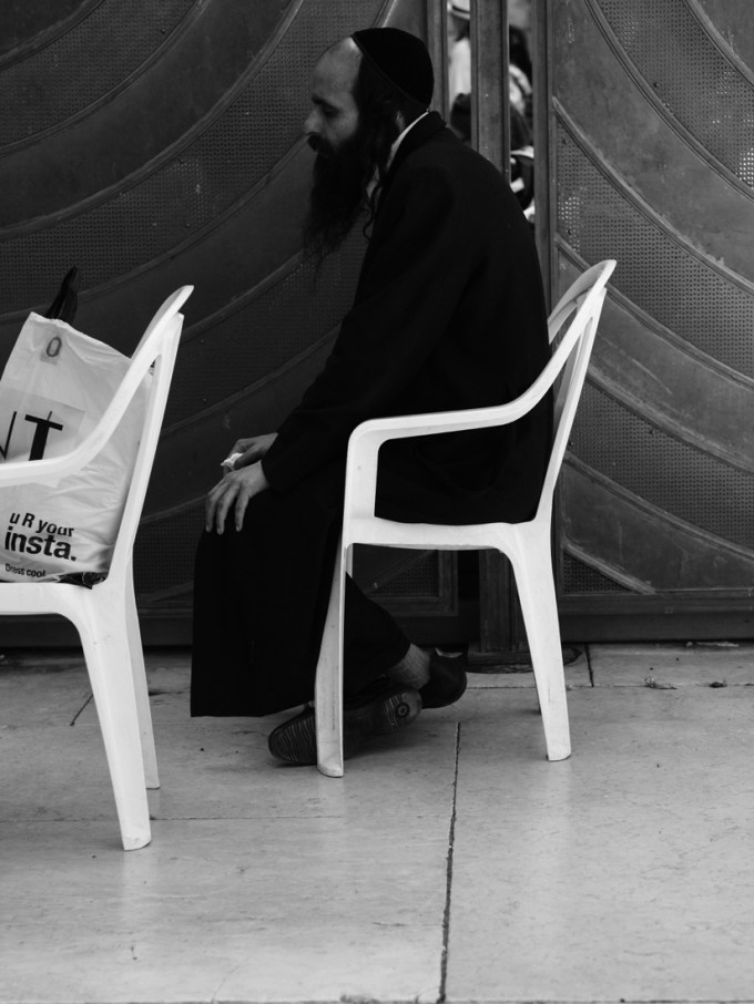 Ich fand es merkwürdig, Aufnahmen zu machen von Männern, die dem Vernehmen nach tief in ihren Gebeten versunken sind. Obwohl der ganze Raum um die Klagemauer herum (außer am Sabbat) wie eine Bühne für zahllose Menschen aus aller Welt gemacht scheint, um genau das zu ermöglichen: Aufnahmen von betenden Menschen zu machen. Trotzdem blieb ich vielleicht zehn Minuten, nicht länger. Und fragte mich anschließend: warum ist es Dir hier unangenehmer als in einer christlichen Kirche, wo ich dasselbe schon viele Male gemacht habe?