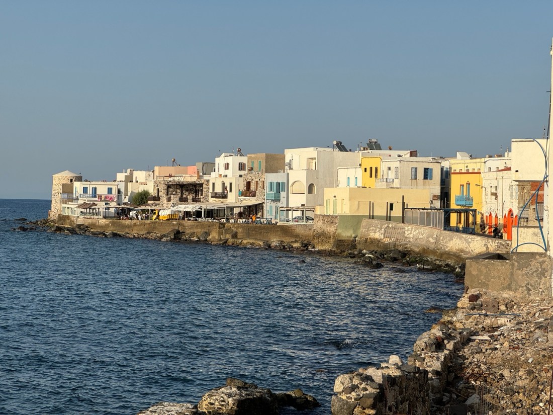 Mandraki – so heißt der Hauptort auf der kleinen Dodekanes-Insel Nisyros. Auf mich wirkte er wie ein altes Piratennest. Die See klatschte unermüdlich gegen die Mauern, die den Ort vor der Ägäis abschirmen. Wenn wir im kleinen, gemieteten Haus saßen und auf der unwirklich schönen Veranda den Blick entlang der Küste schweifen ließen, über uns die Kirche Panagia Spiliani, war das Meer die ständige Begleitmusik, sein Gluckern, Klatschen, Prasseln, Flüstern immer im Ohr, das feinstoffliche Salzwasser inhaliert mit jedem Atemzug. Kein größerer Gegensatz vorstellbar zu den schweflige Ausdünstungen, die der immer noch aktive Vulkan in der Mitte der Insel produziert.