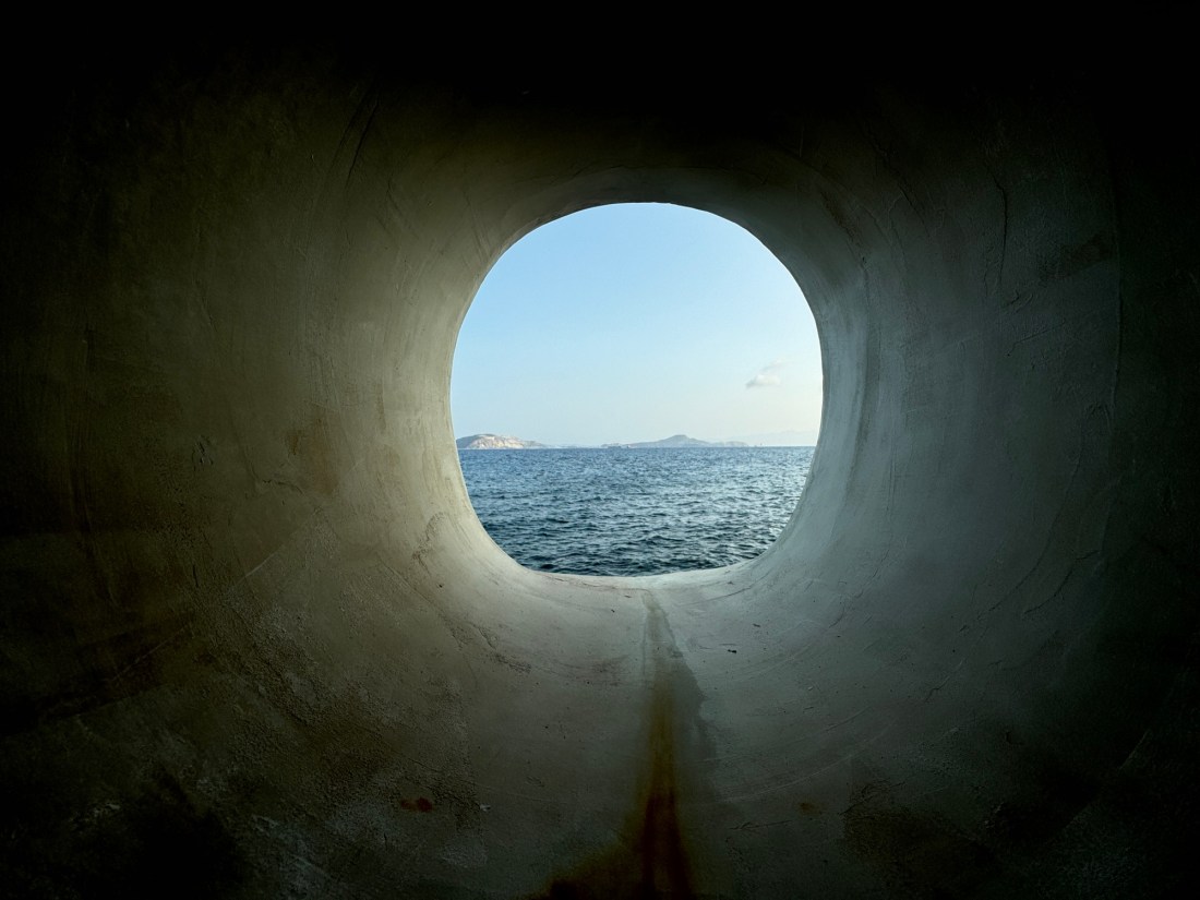 Mandraki – that’s the name of the main town on the small Dodecanese island of Nisyros. To me it seemed like an old pirate’s nest. The sea was constantly lapping against the walls that shield the town from the Aegean. When we sat in the small, rented house and let our gaze wander along the coast from the unrealistically beautiful veranda, with the church of Panagia Spiliani above us, the sea was the constant background music, its gurgling, clapping, crackling, whispering always in our ears, the subtle salt water inhaled with every breath. No greater contrast could be imagined to the sulphurous fumes produced by the still active volcano in the middle of the island.