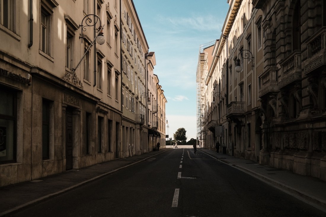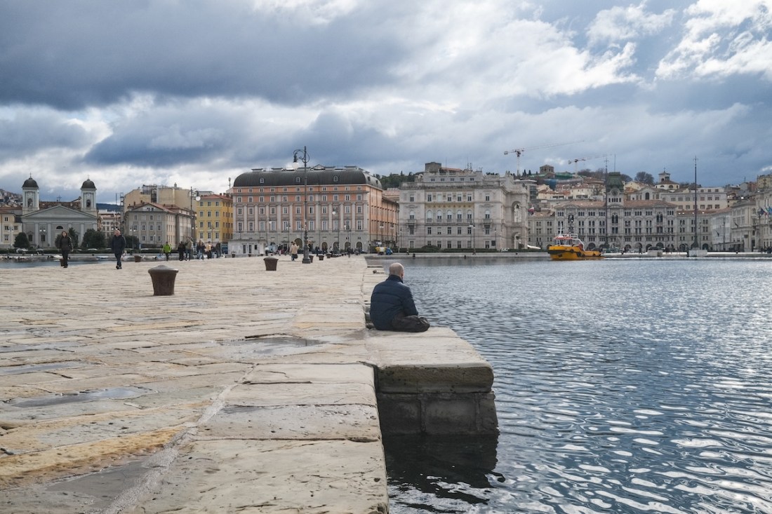 In meiner Vorstellung gibt es Winter-und es gibt Sommerstädte. Athen ist für mich eine Sommerstadt. Das Licht bringt das beige-graue Betonmeer zum Leuchten. Venedig ist eine Winterstadt. Blaugraues Schwanken der kleinen Boote, ab und an das Hallen von Schritten in engen Gassen. Alles ist feucht und kühl, nicht kalt. Wenn ich dort friere, kommt die Kälte von Innen. In Triest war ich vor dieser Reise noch nie. Aber ich wollte lange schon dort hin, am liebsten im Winter. Es gibt Spuren von Texten, die hängen geblieben sind. Die norditalienischen Städte am Meer sind Winterstädte für mich. Nebel und feiner Nieselregen verwischen die Kontraste. Zeichnen sie weich. Italo Svevo lebte hier und schrieb seinen Roman Zeno Cosini. In meiner Vorstellung geht er an der Seite von James Joyce spazieren. Vielleicht entlang des Canale Grande, den es auch hier gibt, allerdings in einer amputierten Version. Ich sehe die beiden in ihren abgetragenen Anzügen von hinten den Kanal entlang schlendern. Svevo hält einen schwarz gelackten Spazierstock in der rechten Hand. Beide tragen Lederhandschuhe. Joyce lebte eine Zeit lang hier und schrieb an seinem Ulysses. Vielleicht gibt es Spuren von Triest im Dublin seines Helden Leopold Bloom. Nicht nur große Literatur ist eine fortlaufende Überschreibung der Wahrnehmungen und des Denkens mit bereits Erlebtem und Gesehenen. Oder Gelesenem. Ich laufe durch Triest und denke an Autoren, die einst hier lebten. So wird die Stadt mehr zu einer Kulisse als zu einem realen Ort. Das Fotografieren holt mich immer wieder da raus, bringt mich zurück ins Leben. In die gegenwärtige Stadt. Jetzt, da ich die Aufnahmen gesichtet und editiert habe, und einen Text dazu formuliert, der mindestens so sehr das Ergebnis meiner aktuellen Stimmung wie meiner Erinnerungen an die Reise ist, wird es bald schon so sein, dass dieser Text, diese Auswahl an Fotos meine Erinnerungen überschreiben werden.